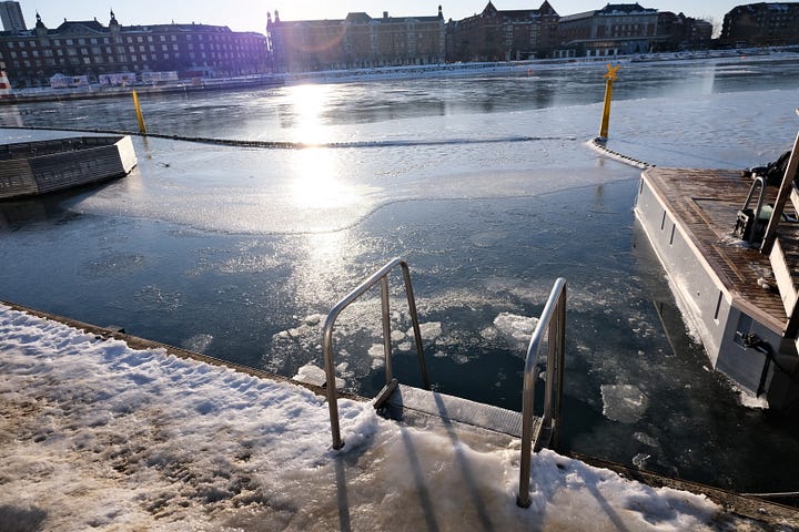 Inside the sauna there were four Copenhagen firefighters, two young corporate office workers and an American couple. The firefighters were having a whale of a time, one of them from what little Dansk I speak lost a bet and had to go in the water and break up the ice. He did it no problem and started swimming around like an otter. The other three made another dick joke when he got back in. The two corporate boys asked me where I was from and then told me they hoped they didn’t get fired today as they would be late for work. One of them was named August and talked me into going fully under the icy water. The American couple sat as far away from everyone and sat hand in hand and I overheard them say things like “Let’s be very intentional” “Give the morning gratitude” yet they looked kinda miserable. They didn’t speak to any of the others and were the first to leave. It was a big example of what is going on a lot in America. As we enter further into our “Wellness Fanaticism” era. The Danes got in the water and when they got out they didn’t act like superheroes. No one came back in and talked about discipline or doing hard things and suffering. They talked amongst their friends, they asked me questions and we talked about life in Charleston and Copenhagen.